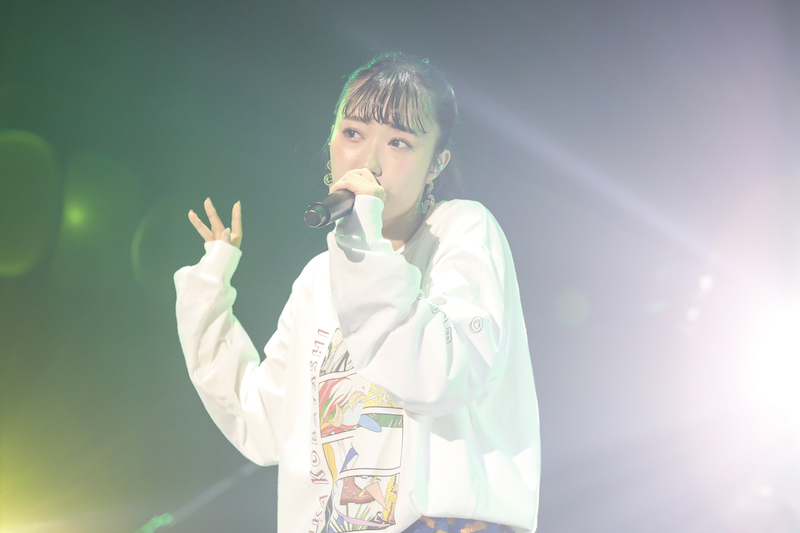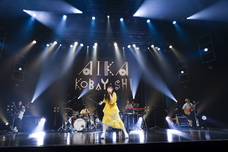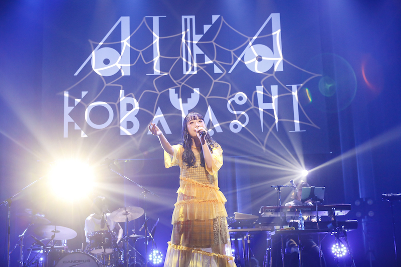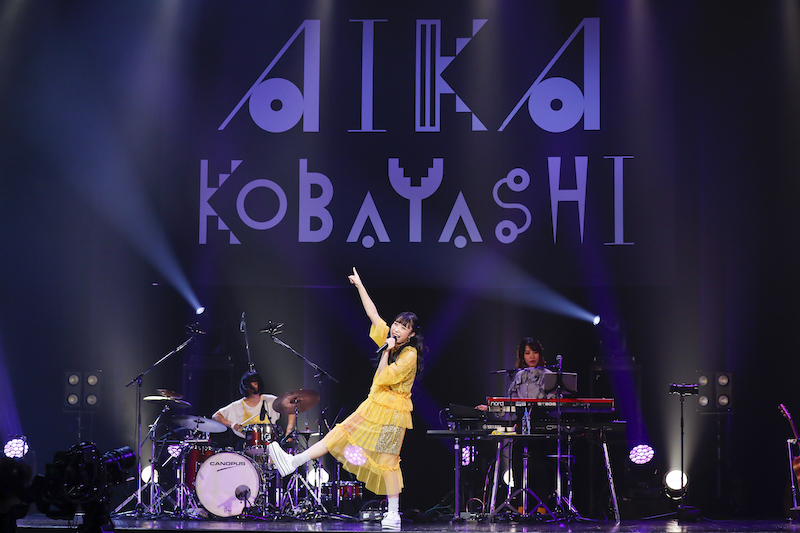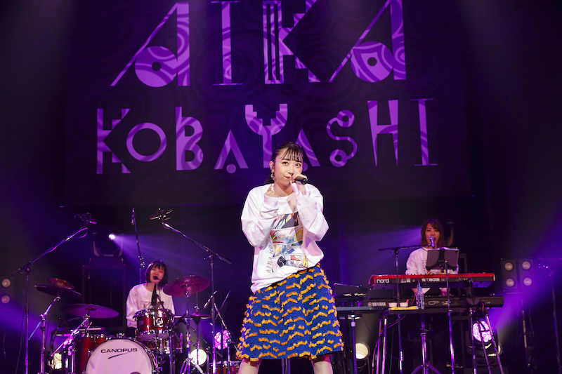 ライブ本編への期待が最大限に高まったところで、黄色いチュールワンピースに身を包んだ小林がステージへ登場。メジャーデビューシングル「NO LIFE CODE」からこの日のライブをスタートさせた。曲中には画面の向こうの観客たちへ向け「ジャンプ!」と声をかけ、自らもステージ上を飛び跳ねていく。2曲目には、温かなサウンドのミディアムナンバー「ゆらゆらら」を披露。サビのリズムにあわせて、手をワイパーのように左右に振る可愛らしい姿で観客を魅了した。