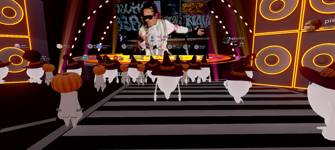 参加者のアバターから多くの拍手などのエモーションが表示される中、きゃりーぱみゅぱ みゅは「ファッションモンスター」、 ハロウィーン時期にぴったりの「Crazy Party Night ~パンプキンの逆襲~」の2曲を披露。バーチャル空間の中で披露されるパフォーマンス は、あたかもその空間に本当にきゃりーぱみゅぱみゅがいるかのようで、「やっぱりかわい い」、「すごい、これ!」、「感動した」など、バーチャルの世界で繰り広げられるパ フォーマンスに興奮した参加者からのコメントが寄せられ、リアルのライブ同様、会場を大 いに盛り上げた。そんなきゃりーぱみゅぱみゅは、今回のイベントに続き、10/31に自身初 となるオンラインワンマンライブ「Kyary Pamyu Pamyu Online Halloween Live 2020『 THE FAMILY 10.31』(​https://kyary.net/thefamily​)をSHOWROOMにて行う。