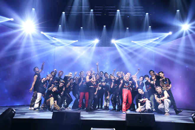 後半戦は、THE RAMPAGEとFANTASTICSのパフォーマー、BALLISTIK BOYZの総勢26名によるパフォーマーショーケースからスタート。THE RAMPAGEのボーカル3人と陣、山本彰吾、岩谷翔吾、浦川翔平、武知海青、後藤拓磨、FANTASTICSの佐藤大樹、木村慧人、BALLISTIK BOYZの深堀未来、奥田力也が競演した「New Jack Swing」を皮切りに、豪華コラボが続く。