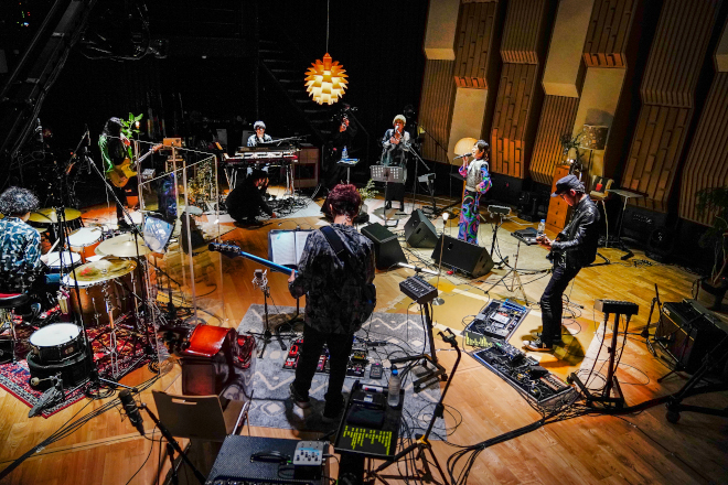 バンドのメンバーは、八橋義幸(ギター、バンドリーダー)、名越由貴夫(ギター)、山本健太(キーボード、バックグランドボーカル)、須藤優(ベース)、玉田豊夢(ドラムス)、稲泉りん(バックグラウンドボーカル)。場所は渋谷区富ヶ谷のStudio Tantaだ。