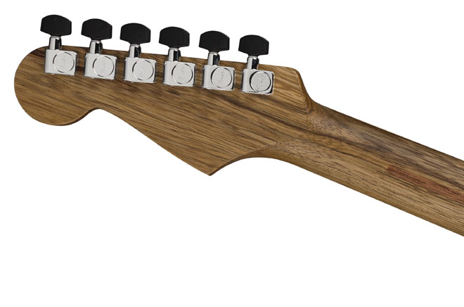 「American Acoustasonic Stratocaster Ziricote」は、新しい楽器プラットフォームとして人気のAmerican Acoustasonic Stratocasterのトップ材に稀少価値の高いジリコテを、バックとサイドそしてネック材にはブラックリンバを採用した限定生産モデル。エキゾティックなルックスをまとった美しく高級感溢れるルックスにより、これまでにないスタイルとトーンを提供する。