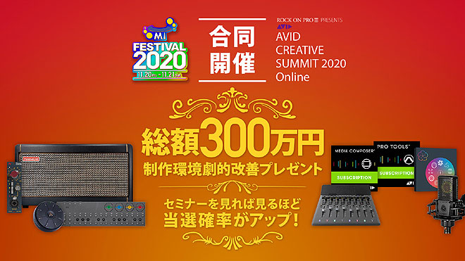 音楽制作を楽しんでいる人にうれしい、おうちで見られる大型のオンラインセミナー、生配信イベントが開催。音楽制作ソフトウェア/ハードウェアを数多く取り扱うメディア・インテーグレーションMI事業部が、配信セミナーイベント「あらゆる分野で2021年を切り開く23のプログラム MI FESTIVAL 2020」を11月20日(金)、21日(土)に開催する。