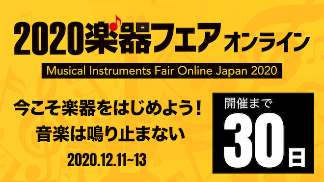2020年12月11日~13日に開催される<2020楽器フェア オンライン>が、1ヵ月前となる11月11日18時にプレオープンした。