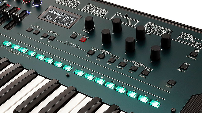 使い勝手に優れた37鍵のキーボード・シンセでありながら、グルーヴ・マシンに匹敵するシーケンサーも搭載。パネル右下の緑に輝く16のボタンが万能な16ステップ・シーケンサーとなっている。1ステップに6音までレコーディングできるポリフォニック・ノート・シーケンサーはベロシティやゲート・タイム、再生タイミングをノートごとにエディット可能。一般的な16ステップでは作れない長尺フレーズや、タイミングを微妙にずらしたストラムやロールなどの表現も可能。さらに最大6つまでパラメーターの動きを記憶できるモーション・シーケンサーも備える。