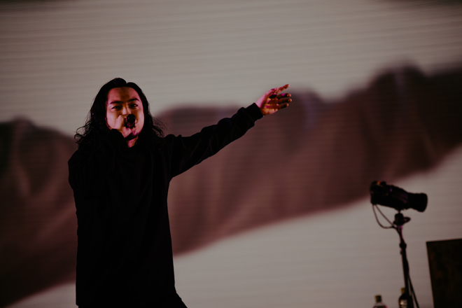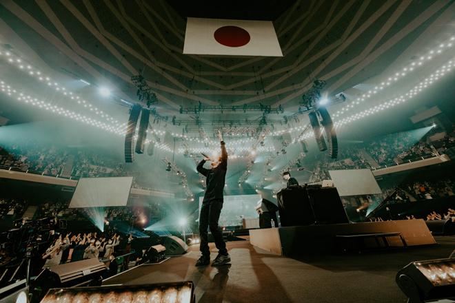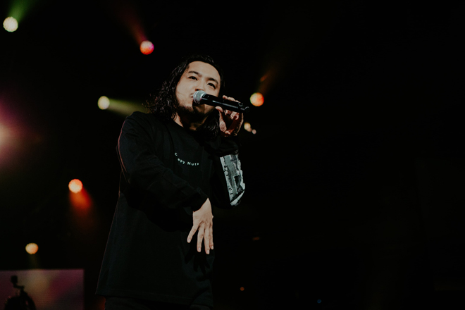 アンコールでは、事前に会場に設置されたお題投稿箱でフリースタイルのお題を募り、ステージからそのお題を全部入れたフリースタイルをやるというR-指定の得意技でもある“聖徳太子フリースタイル”を披露。この日もお題をすべて見事にクリアし、オーディエンスの心をしっかり揺さぶった。その余韻に浸る間も無く、客席のエリアの中央に設けられたステージがせり上がり、DJ松永がその高台で<DMC WORLD DJ CHAMPIONSHIP FINALS 2019>でも見せつけた世界一のルーティーンの腕前を披露し、凄まじい手捌きにオーディエンスも熱狂した。その熱狂のまま、スマホ向け大規模対戦ゲーム『A.I.M.$ -All you need Is Money-』キャラクターのテーマソングとして起用され、ライブで初めてパフォーマンスした新曲「Bad Orangez」を披露。新旧織り交ぜた充実の全23曲を披露し、初の日本武道館公演の幕を閉じた。