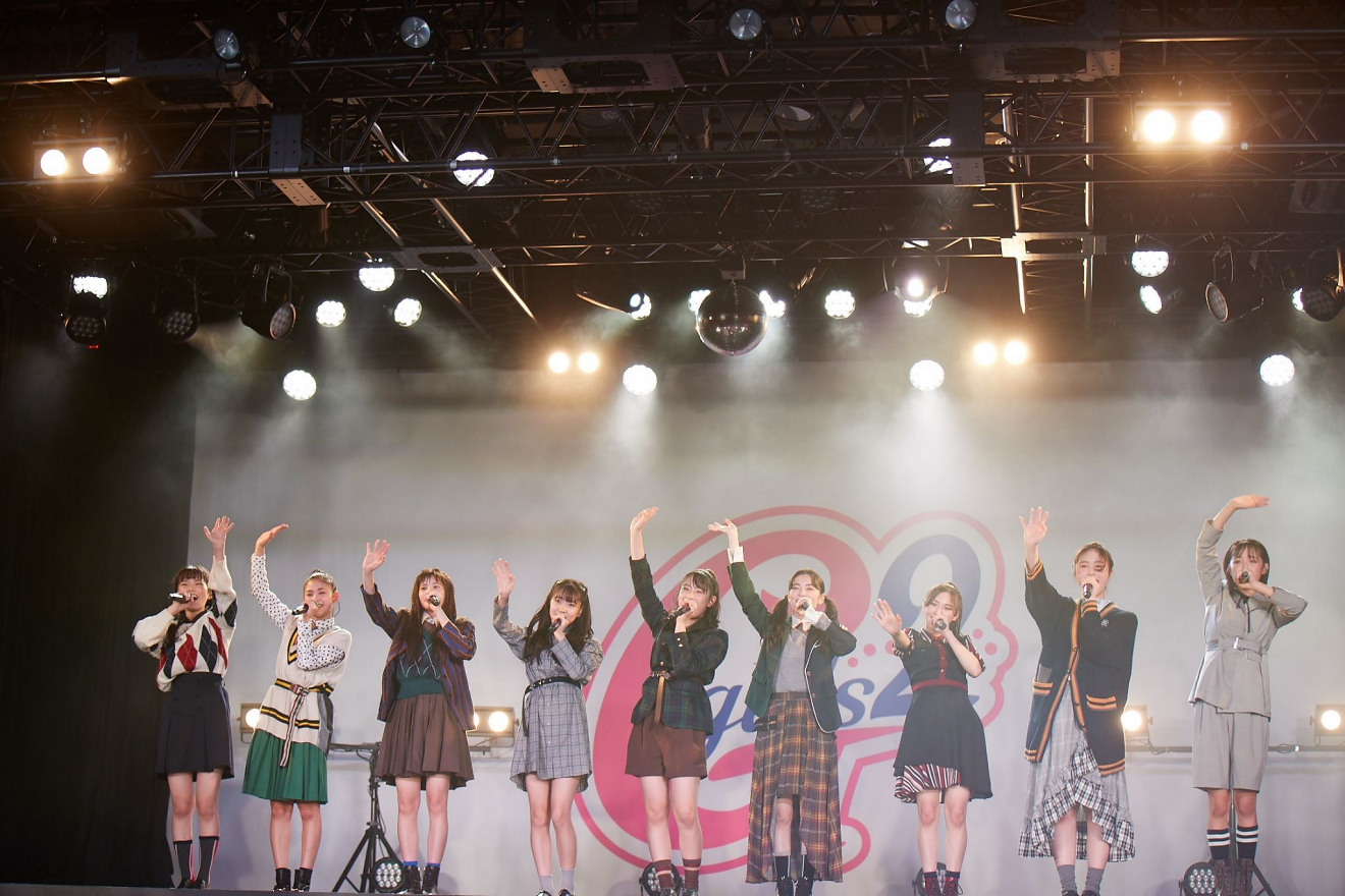 小田柚葉が先生になって指導してくれたというmiracle²の楽曲から、magical²、mirage²と彼女たちの歩みを改めて実感する。シンデレラガールズとしてデビューした後も、着実に成長を重ねていった9人。英語歌詞の「TOY BOY」をクールに歌う姿には、グッと大人っぽくさを漂わせ頼もしささえ感じられるほどだ。「チョコモーモー」「恋するカモ」とクライマックスを迎えると、待ちに待った重大発表が。それは2021年1月から、新しいドキュメンタリー『Girls² REVOLUTION』(Girls² Official YouTube Channel)の配信、そして2021年春に<ガル学。~聖ガールズスクエア学院~>の配信ライブ開催が決定したという知らせだった。