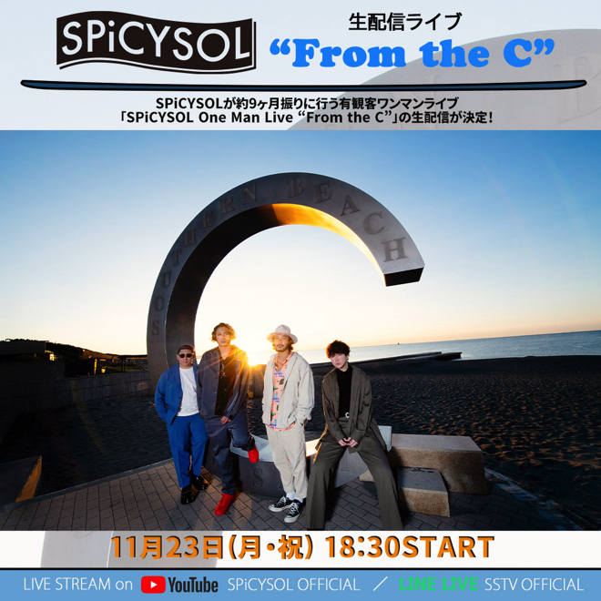 なお、彼らは11月23日(月・祝)に神奈川・茅ヶ崎市民文化会館 小ホールでワンマンライブ<SPiCYSOL One Man Live “From the C”>を開催することが決定している。同公演のチケットはすでに完売となっているが、ライブの模様はオンラインで生配信されるそうだ。配信はスペースシャワーTV公式LINE LIVEアカウントおよびバンドの公式YouTubeチャンネルで実施予定。YouTubeでは1週間アーカイブ視聴も可能となる。