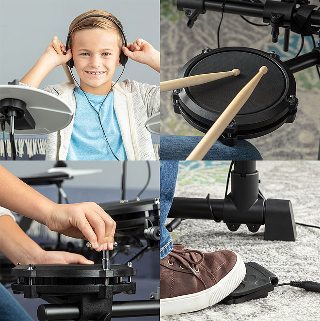 「Alesis Debut Kit」は、ドラム演奏に必要なすべてが揃ったキッズ向け電子ドラムキット。4つの6インチ・メッシュヘッド・ドラムパッドは、ラバー製の電子ドラムパッドのように余計なノイズを抑え快適に叩くことができるよう設計。大型で叩きやすい大型の10インチ・シンバル3枚に加え、操作しやすくレスポンスの良いフットペダルを装備したキックドラムとハイハット。さらに、高さ調整可能な専用スローンにヘッドホン、ドラムスティックまでもが同梱されている。