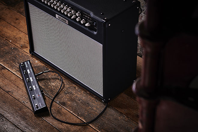 ライブでの視認性を考慮し、コントロール部は本体前面に配置した。視認性に優れたホワイトのノブで状態を容易に把握することが可能。また、本体背面には8Ω/16Ωの外部スピーカー・アウトを装備、外部スピーカーの増設も行える。ほかにもエフェクト・ループ、外部フット・コントローラーによるコントロール、PAなどへ接続可能なXLR端子、MIDIコントロールへの対応など、充実の機能を搭載する。