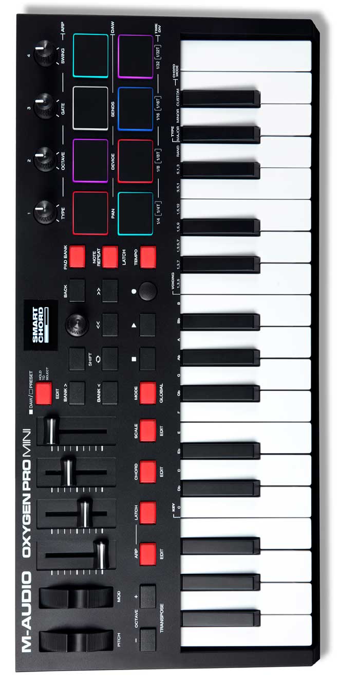 M-Audio、フェーダーやノブを自動マッピング、指1本で和音を奏でる機能も備えたキーボード「Oxygen Pro」シリーズ3モデル