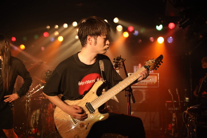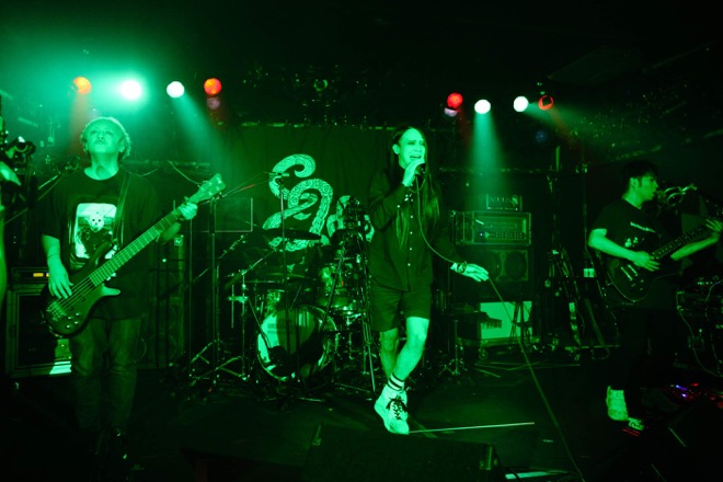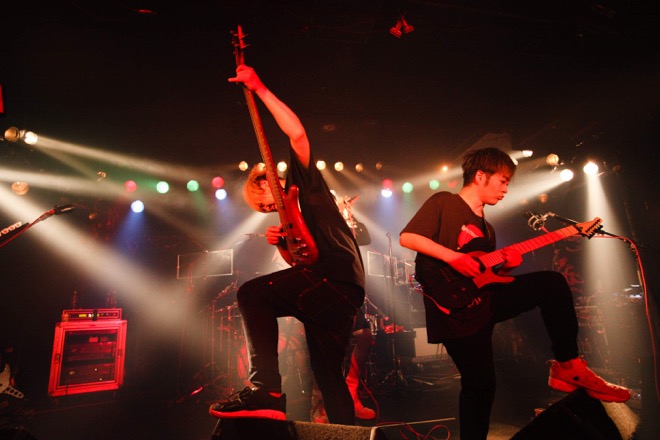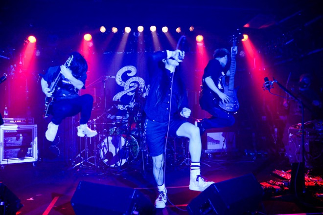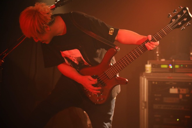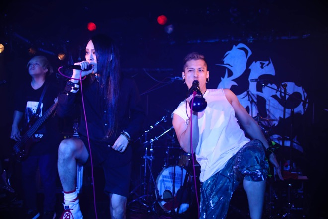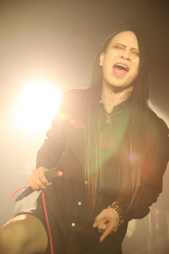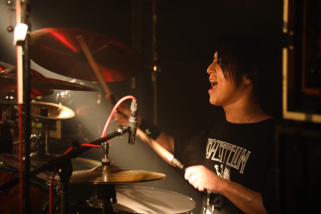 この後、「キンセンカ」「はりぼてのおとな」「茜空」を届け、後半戦へ。MCを挟んで届けられた「目眩」では、NOCTURNAL BLOODLUSTのボーカル尋がゲストボーカルとして参戦し、ツインボーカルで届けられた。音源で共演したlynch.の葉月のパートでもあることもあり、そこを超えたいという想いと、先輩バンドの中で歌うというプレッシャーが重なっているところへ、ナント、10キロのダンベル付きの“尋専用マイク”が用意されていた。さすがMUCC。愛のある後輩弄りは健在だ。そんな軽くないイジメを物ともせずパワフルなデスボイスと笑いを加えてライヴを盛り上げた尋。NOCTURNAL BLOODLUSTというバンドを知らないファンも多かったようだが、その姿は確実に初見の視聴者も虜にしただろう。