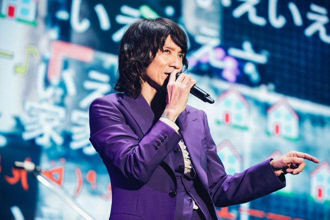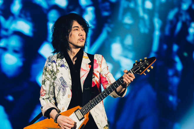 万感の想いを伝えた吉井の「今夜もみなさんから集められた素敵な歌声を響かせて、また新しいバラ色の未来を探しに行きたいと思っております」という言葉とともに流れ込んだ「バラ色の日々」では、事前に<Sing Loud!>企画で募集したファンの歌声が、会場と配信画面越しの観客の情熱を代弁するかのように広がり、至上のロック祝祭空間を生み出していた。