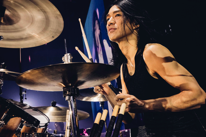 ロック少年のイノセンスを凝縮したような「空の青と本当の気持ち」までエマ楽曲のコーナーが続いたところで、暗転。ビジョンの映像では時間がどんどん巻き戻され、2016年の代々木公演、さらには再始動の象徴である金色のサナギと「準備ALRIGHT?」のメッセージが映し出される。舞台に再登場したメンバーが力強く響かせたのはもちろん、再始動の象徴的ロックナンバー「ALRIGHT」。刻一刻とギアを上げていく吉井の歌声とバンドの熱演は、「SPARK」でさらなる高揚感を体現していく。