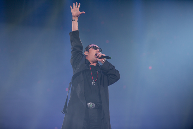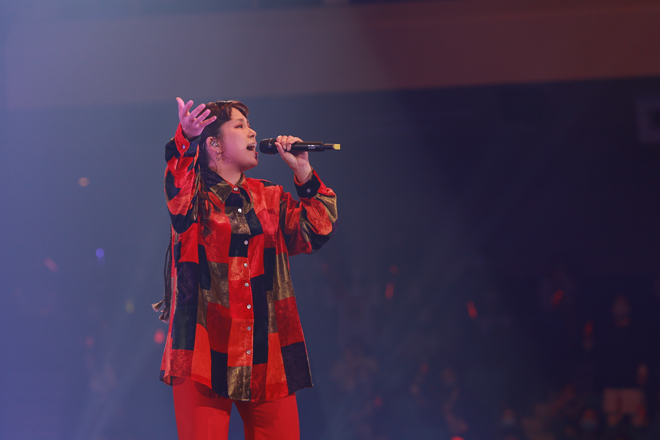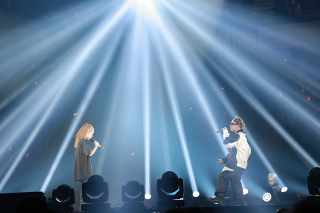 続いて、花柄のワンピースに身を包んだ加藤ミリヤが登場し、幸せな「Love is…」、切ない「Last Love」を情緒深く歌い、最新のカバーアルバム『COVERS -WOMAN & MAN-』でもみせた歌い手としての表現力もみせつけ、世界に引き込む。そしてこのふたりの登場でガラッと世界が変わった。「I’ll be there with you feat. AI & 青山テルマ」ではAI、青山テルマが登場し、AIが涙ぐむ場面で3人で抱き合う姿も見せ、友情を届けた。さらに、トリビュートでもAIがカバーを披露した「勇者たち」をミリヤが歌いあげた。