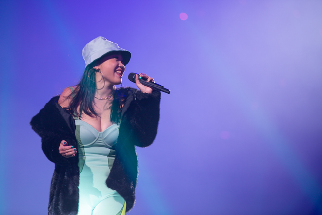 続く「LALALA feat.若旦那(湘南乃風)」では、新羅慎二が登場。久々のコラボレーションに客席も大いに盛り上がる。続いて、昨年発表されたファンが選ぶベスト配信盤で上位の人気を得た「People」を筆頭に「UGLY」「X.O.X.O.」を畳みかけるように披露。そして今年、コロナ自粛中に毎日Instagramに弾き語りを投稿していた延長線上にファンとSNS上でコミュニケーションをとって作った新曲「COLORS」をここで披露した。続いて、女子高生達のアンセムとなっていた「ディアー ロンリーガール~新約ディアーロンリーガール」を披露し、長年のファンへの愛情深さに心が温かくなる場面となった。