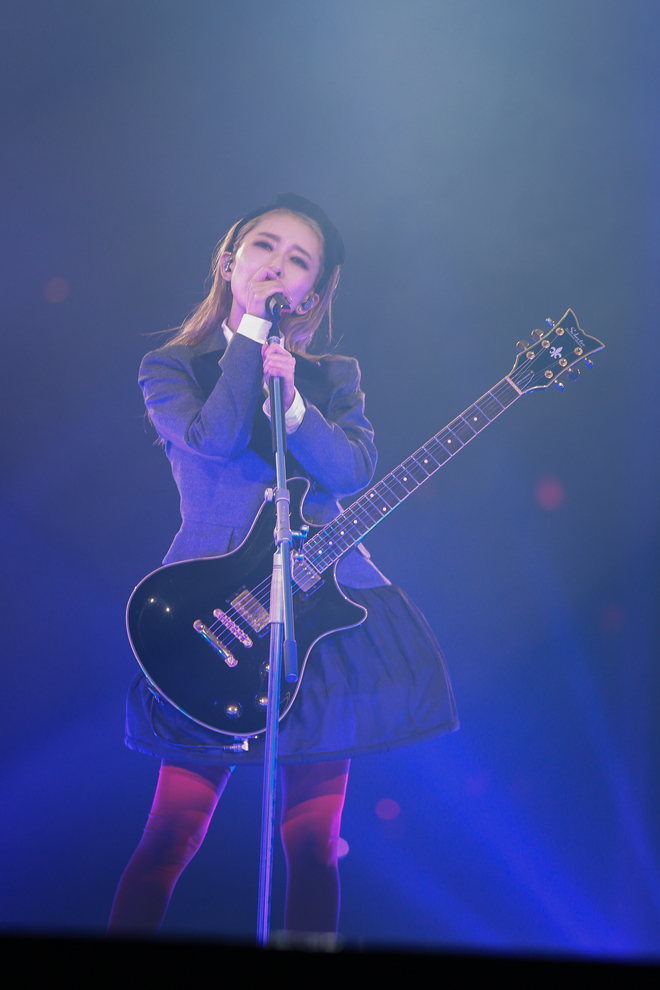 そして、「いまから約10年前、20歳のときに初めて武道館でライブをやらせてもらってから、久しぶりの武道館になります。今回は考えて考えて、センターステージにしました。結果、みんなと距離が近くて、顔も見えてるよ」とはにかみながら観客に語りかけた。「こういう時だからこそ、今まで当たり前にやっていたライブがどれだけ尊いものだったのか感じますね。今まで配信はやらせてもらったのですが、今日はみんなの姿や体温を感じながらできることが幸せです。物事は流れて変わっていくと思うのでまたみんなとライブできるまで、今日は今日の楽しみ方で楽しんでください!」とファンに呼びかける。