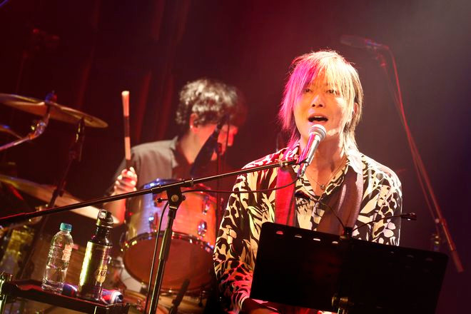 客席でセッションを楽しんでいたKISHOWが、「カッコいい曲でしたね」と言いながら再びステージへ。MCを挟んでKISHOW、e-ZUKA二人だけで演奏されたのは、KISHOWいわく「GRANRODEO二人のアコースティックライブで最も多く演った曲」だという「Infinite Love」。彼らのワンマンでも馴染み深い光景だ。とはいえここはブルーノート東京。いつもよりたおやかな響きを残す歌と演奏に、スペシャルな雰囲気が漂っていた。