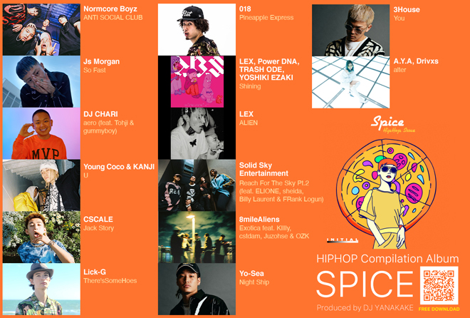 DJYANATAKEをプロデューサーに迎え、若手HIPHOPアーティスト総勢14組をフックアップしたデジタルコンピレーションアルバム『SPICE』が、12月3日にLINE MUSICにて独占配信された。
