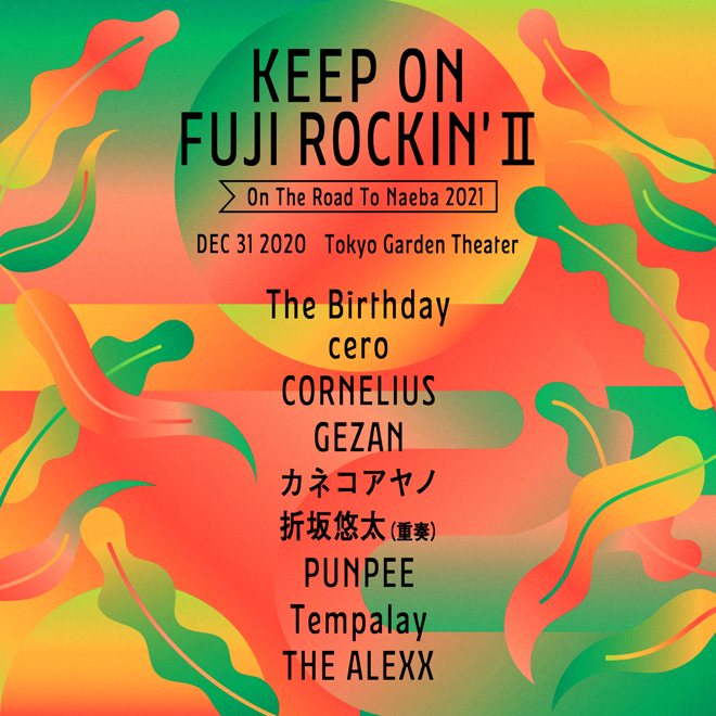2021年の苗場での<FUJI ROCK FESTIVAL>開催に向けて、2020年12月31日(木)大晦日に東京ガーデンシアターにてオールナイトイベント<KEEP ON FUJI ROCKIN’ II〜On The Road To Naeba 2021〜>がおこなわれる。このたび、タイムテーブルが発表された。