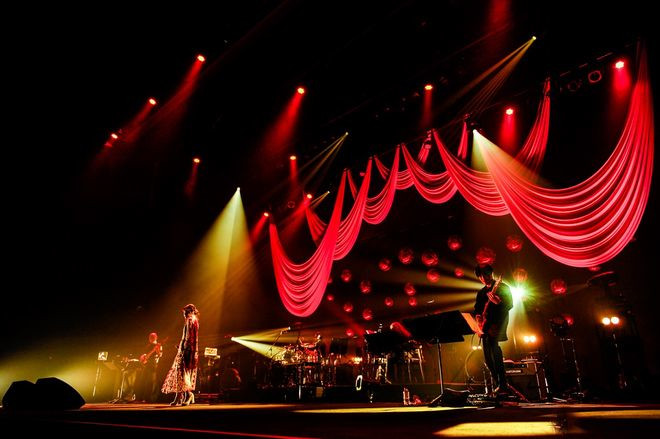 そしていよいよ、『マクロスF』のランカ・リーとして歌うパートがやって来る。まずは「放課後オーバーフロウ」。「この曲は(May’nが)隣にいてほしいんですけど、今日は一人で歌います」というMCに続いての「ライオン -ランカver.-」。そして、劇場版『マクロスF~サヨナラノツバサ~』のラストを飾った美しいバラード「ホシキラ」を歌い上げ、ライブ本編は幕となった。