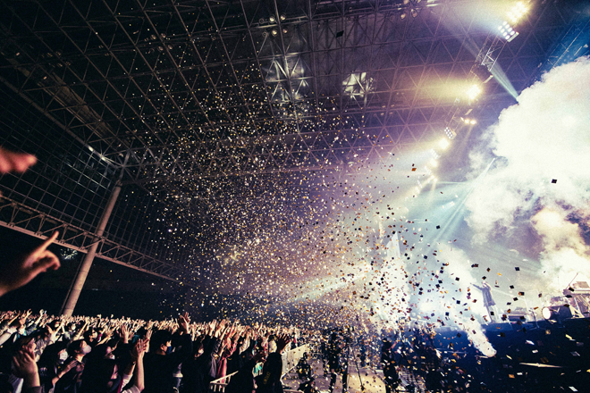 さらに「Teenager Forever」での金色の紙吹雪が舞う最高潮な盛り上がりに続いて、ツアー最終日ということもあり、井口が「じゃあラスト1曲、新曲やります!!!」と、ツアー初のダブルアンコールに答えた。ライブ初披露となる最新曲「千両役者」をポップとオルタナティヴが交差するアグレッシヴな演奏によって圧巻のパフォーマンスで繰り広げていく。サウンドとシンクロする、半端ない数のレーザーが飛び交う非現実な空間をこれでもかと堪能させてくれたのだ。