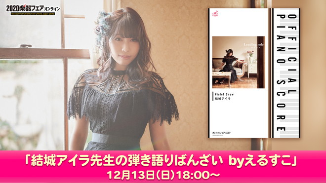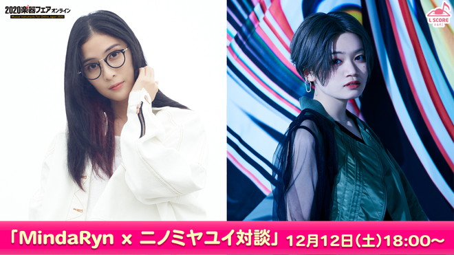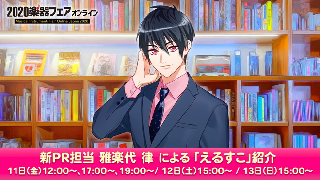 <2020楽器フェア オンライン>の開催期間である12月11日(金)~13日(日)の3日間には、えるすこ新広報キャラクター「雅楽代 律(うたしろ りつ)」によるブランド紹介を実施。また、12月12日(土)にはMindaRyn x ニノミヤユイのスペシャル対談、12月13日(日)には結城アイラによる弾き語り生配信が予定されている。