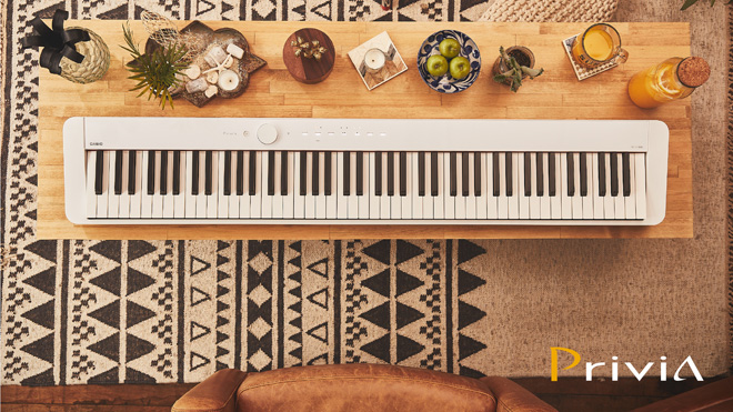 ステイホームが続く中、カシオからのお薦め電子ピアノはPrivia PX-S1000だとのこと。スタイリッシュなデザインでありながらもグランドピアノのタッチや音色が再現されており、プロミュージシャンからも高い評価を得ているモデルとなっている。Priviaは、憧れのピアノを身近な存在にするべく、音質や鍵盤タッチなど電子ピアノそのものの性能を高めながらも価格・重量とも従来の半分という目標の下で開発されたシリーズだ。