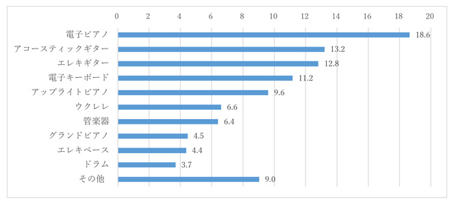 楽器演奏に関する意識調査、一番演奏したのは電子ピアノ