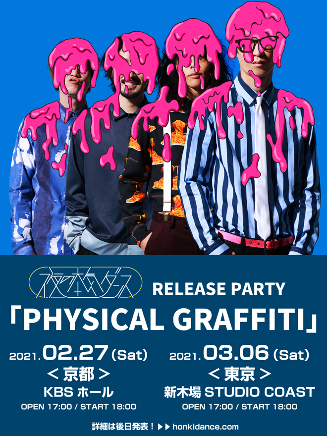 さらに、今作のリリースパーティであるワンマンライブ<夜の本気ダンス RELEASE PARTY「PHYSICAL GRAFFITI」>の開催も決定。2021年2月27日(土)に京都・KBSホール、3月6日(土)に東京・新⽊場STUDIO COASTにて実施する。チケット発売情報は追って発表されるとのこと。