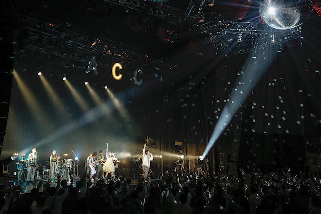 さらに「Don’t Think, Feel」以降は弦楽カルテットも参加。最大16人によるサウンドは非常にゴージャスである上に、ブレイクがしっかり効いており、心地よく踊れる感じもある。また、ギタリストのモリシーをセンターに据えたステージングはなかなか特殊だが、“3人全員フロントマン”的な見せ方は、今のAwesome City Clubの自由な空気感にフィットしていた。