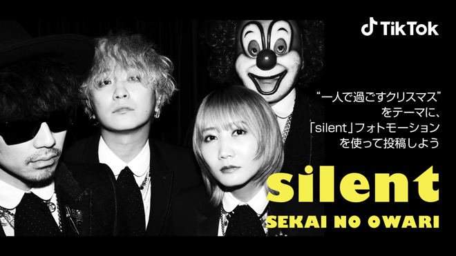 「silent」は、SEKAI NO OWARIがTBS系連続ドラマ『この恋あたためますか』の主題歌として書き下ろしたクリスマスソング。12月16日(水)には同楽曲を収録したニューシングルがリリースされる。「TikTok」の投稿キャンペーンでは、「silent」のフォトモーションを使って“一人で過ごすクリスマス”をテーマに動画を投稿したユーザーの中から、抽選で3名にメンバーのサイン入りポスターがプレゼントされるそうだ。