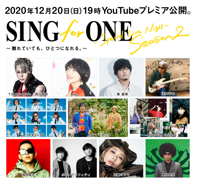 12月20日にYouTubeで公開されるライブ映像特番第2弾『SING for ONE 〜Special Live Night〜 Season2』のティザー映像が公開され、新ナビゲーターとして俳優の佐藤隆太が出演することも発表された。