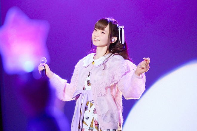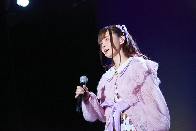 トークコーナーのあとは、ライブコーナーがスタート。ミニアルバムから「Morning glow」「揺れていたい」が披露された。「Noonの回なので、朝・昼っぽい曲を選んでみました。みんなも思い思いに、揺れてみたり、クラップしたり、楽しんでいただけましたか? それではあともう1曲、聴いてください!」と言って歌ったのは、みんなで楽しめる「Lilac」。会場もパープル色のペンライトを目一杯振ってライブを楽しんだ。