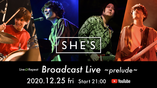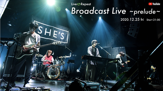 今回公開されるのは、春に予定していた全国ツアーが新型コロナウイルスの影響で中止となったことを受けて、7月28日に開催された無観客配信ワンマンライブ<SHE’S Broadcast Live ~prelude~>の映像全編。様々なライブやイベントが中止を余儀なくされた2020年を象徴するような公演となっている。
