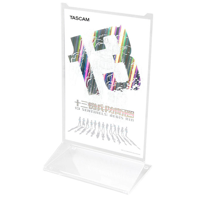 ヘッドホンスタンド「HP-STAND-13SAR」は白を基調に機兵とキャラクターのシルエットを印刷。13の数字とタイトルロゴをホログラムレインボー箔で表面に仕上げたアクリル製ヘッドホンスタンドとなっている。
