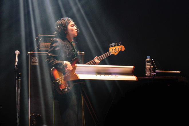簡単な挨拶を済ませると、「rendez-vous」では同期を流し、田中はシンセベースをプレイ。斉藤はセミアコからエレキに持ち替えて、ときおり強烈な歪みを聴かせる。ロマンティックな曲調の「麗らか」から「close to me」の流れはアルバム同様シームレスに繋がっていて、「close to me」では野元がパッドと生ドラムを行き来しながらプレイ。電子楽器を織り交ぜた自由度の高い演奏は、彼らの世代にとってはもはやスタンダードで、曲調によってさまざまな楽器を使い分けるセンスも十分だ。