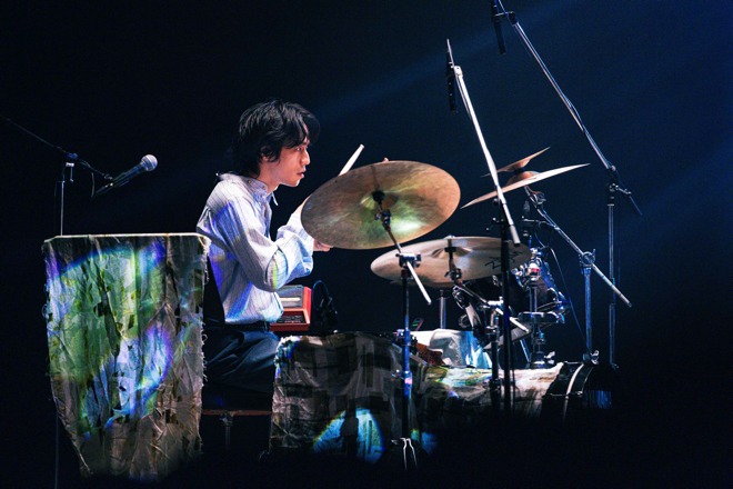 斉藤がサンプラーを使って印象的なコーラスを再現した「Mademoiselle」に続いては、アルバムの中で唯一田中が作曲に携わった「cart pool」。タイトル通り、ベースのループを軸に構成され、シンバルが打ち鳴らされる後半はかなりサイケデリックだ。音源ではフェイドアウトで終わっていたが、ライブでは途中で次の「ijo」に切り替わり、この曲もドラムのパターンが特徴的。やはり、ループの気持ちよさもこのバンドの重要な要素である。