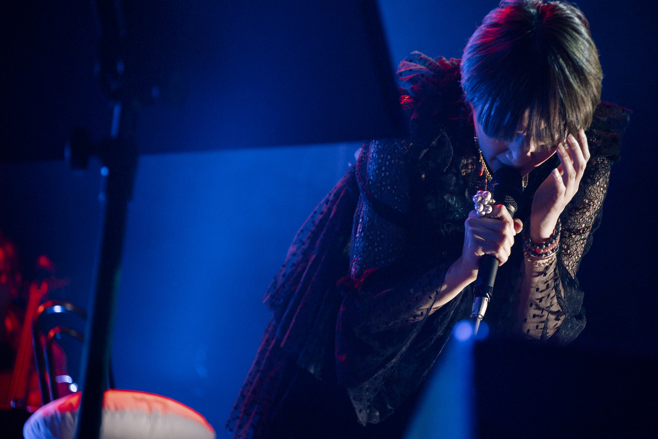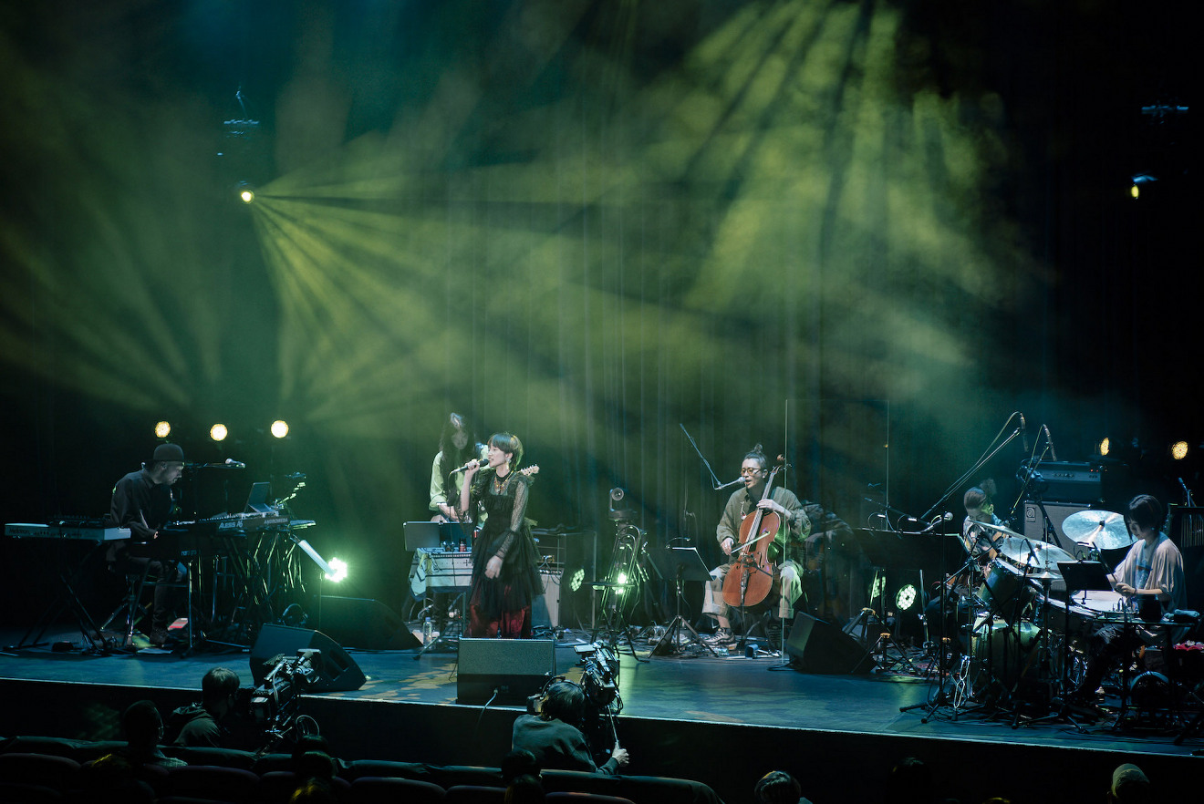 しばしのブレイクをはさみ、後半は、配信シングルとしてリリースされたばかりの「衝撃」で再開。奥行きと広がりを感じさせるスケールの大きな音像と、そこに乗る彼女の力強い歌声。続けざまに披露した『Barometz』から「Little bird」における気怠くも熱のこもった歌唱とともに、思わず鳥肌の立つ瞬間だった。続く「パラレル」は、現バンドでのダウンテンポなリアレンジ・ヴァージョン。ここまでの3曲は、いずれもイスに腰掛けての熱唱だったが、いまにも立ち上がりそうな勢いで歌に向かって魂を解放する姿が、熱いものを誘う。