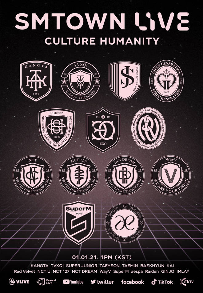 <SMTOWN LIVE “Culture Humanity”>と題された今回のコンサートは、新年に新型コロナウイルスの影響で大変な時間を送っている世界中の人々を応援し、希望を伝えようと企画された特別公演だ。KANGTA、東方神起、SUPER JUNIOR、少女時代のテヨン、SHINeeのテミン、EXOのベクヒョンとカイ、Red Velvet、NCT、SuperM、aespa、GINJO、IMLAY、Raidenら出演アーティストのパフォーマンスを、AR技術による演出なども交えてオムニバス形式で届ける。防疫対策を講じた上で全てのステージを事前収録にて進行し、安全に撮影を終えているということだ。