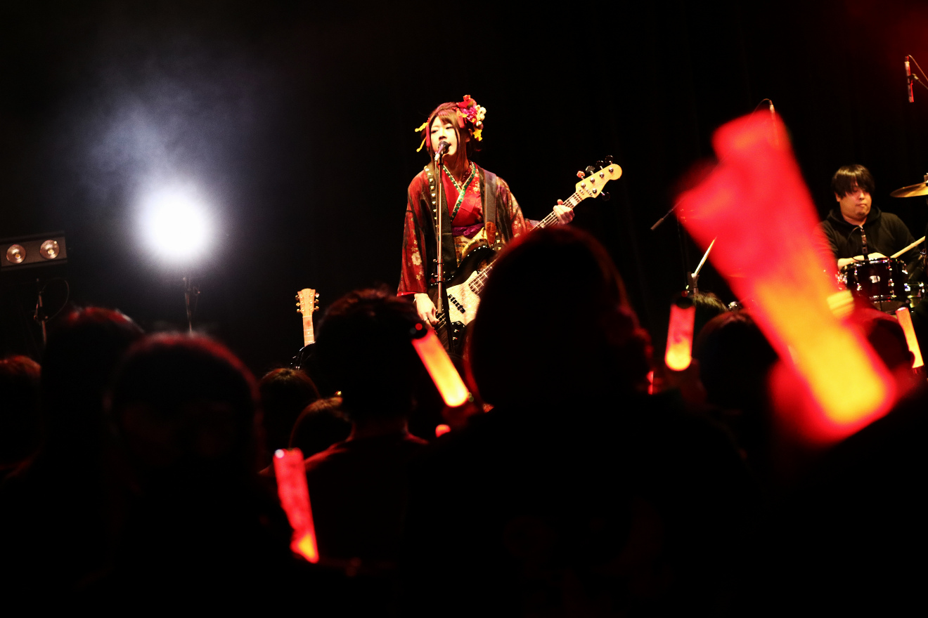 バンドの前のめりな演奏に導かれるように、ペンライトを振る観客の手にも自然と力が入っているのが感じられた。また、手数の多いバンドのプレイに影響されてか、亜沙のボーカルにも荒々しさが加わっていく。続く代表曲のひとつ「吉原ラメント」、そして「未来世ライフ」では場内の熱気がさらに高まり、演者と観客がひとつにつながっていくのが肌で感じられた。