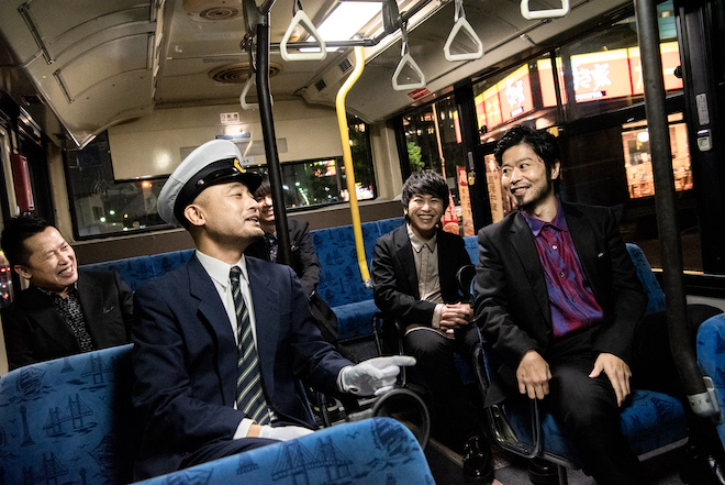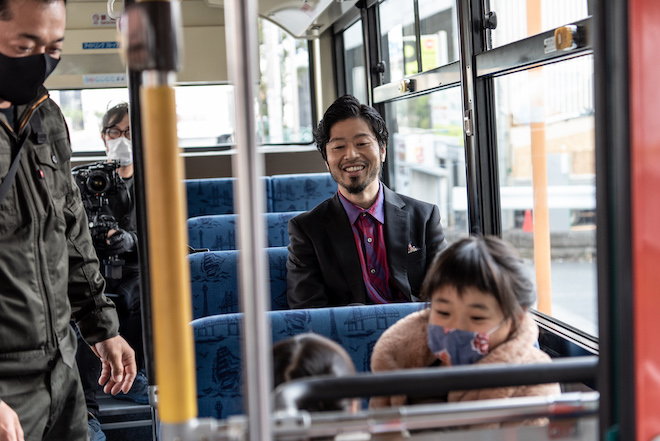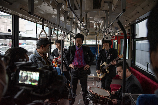 乗客が下車し、カメラが引いていくと楽器を持ったメンバーがフレームイン。バスの中で情感豊かに「世明けのうた」を演奏し終えると、目的地に到着。メンバーが降りようとすると、その後ろ姿を見守るバスの運転手。運転手役を務めたのは、名脇役としても知られる俳優の宇野祥平。実は上中、山田武郎(G)、中田俊哉(B)の高校時代の先輩で、上中と中田は同じ野球部に所属していた。宇野はデビュー前から彼らを見守り続け、お互いの道で切磋琢磨してきた存在で、いつか仕事で共演したいという夢が実現した。