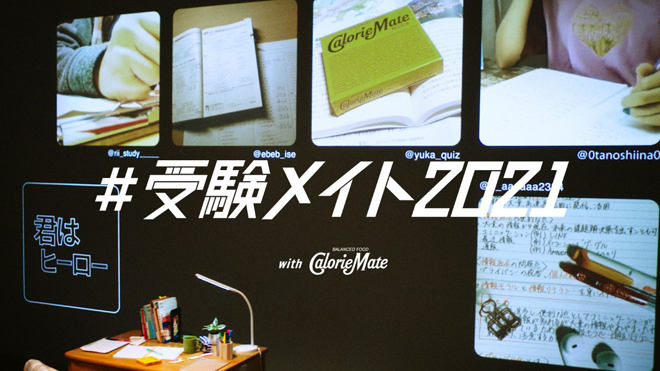 カロリーメイトは、全国の2021年受験組を「受験メイト2021」と呼び、来たる入試に向けて受験生が前向きな気持ちになり、士気が高まるような動画を届けることで応援する。