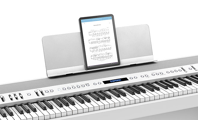 いずれのモデルもピアノとスマホやタブレットを無線接続できるBluetoothオーディオ/MIDIに対応。ローランド・オリジナルの無料アプリ「Piano Every Day」を使って、日々の練習を記録したり、内蔵曲を譜面表示することができる。「FP-90X」「FP-60X」には、外部から入力されるオーディオの曲のテンポに合わせてクリック音を鳴らすことができる新機能「オートテンポ」を搭載した。Bluetoothオーディオ機能を活用すれば、お好みの曲や動画の音声を再生して、クリック音を聞きながら一緒に演奏することができる。