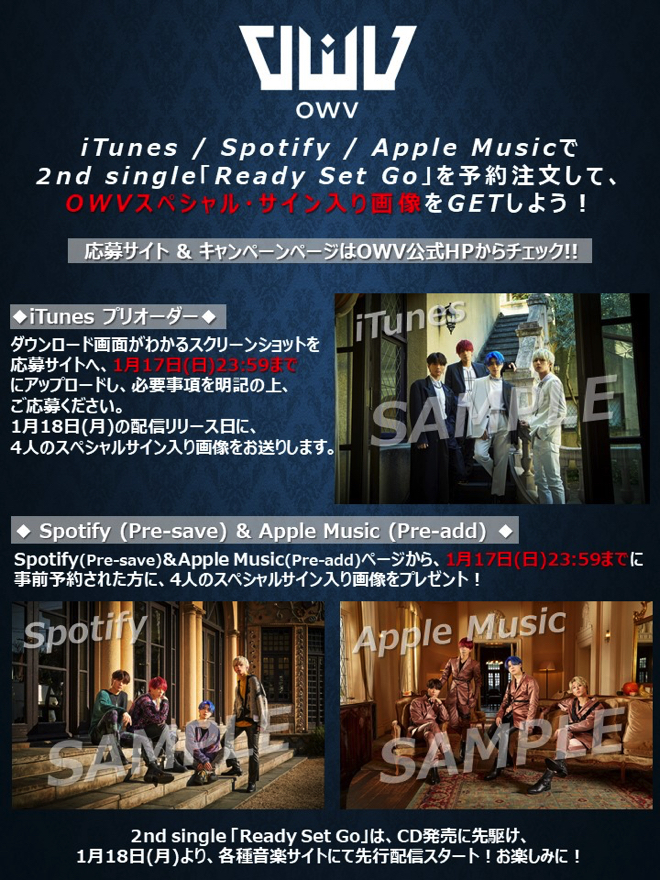 OWV 2ndシングル「Ready Set Go」を対象店舗にてご予約・ご購入の方に先着特典をプレゼント