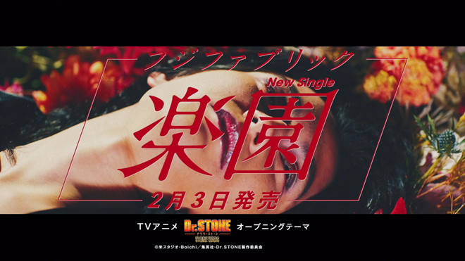 TVアニメ『Dr.STONE』第2期のオープニングテーマでもあるフジファブリックのニューシングル「楽園」(2月3日発売)のCM SPOTが公開された。