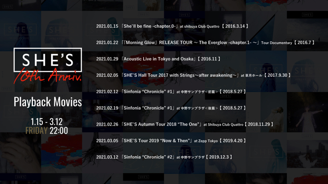 SHE’S、過去ライブ映像で軌跡をたどる<Playback Movies>スタート