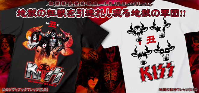 KISS干支Tシャツは、その名の通り2021年の干支「丑」とのコラボTシャツだ。「炎のゾディアックTシャツ」と「地獄の獣神Tシャツ」の2種類が用意されているが、2021年のマストバイアイテムとして見逃せないアイテムとなっている。受注販売期間が2021年1月15日(金)~31日(日)までという期間限定なので、うっかり見逃しにご注意を。