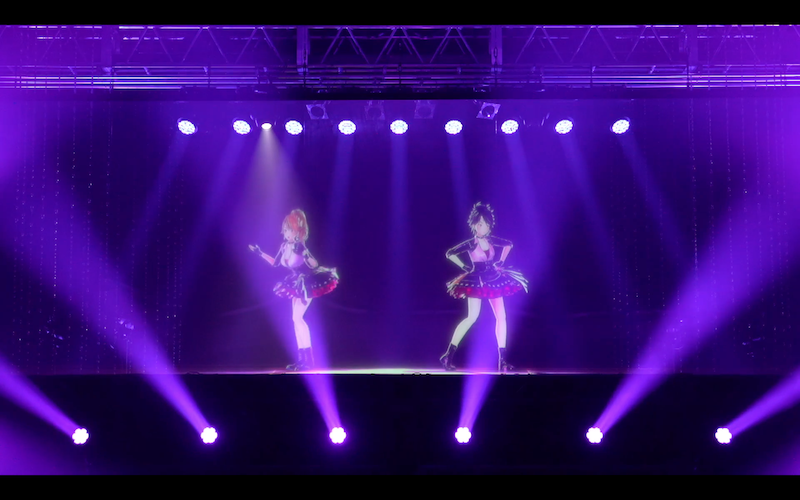 その言葉通り、中盤戦は“楽しい”が満載のターンに。赤羽、水科、星菜、長谷みことの4人が揃い、カントリーな響きの「ネットのかみさま」で電波系リリックを唱えつつ愛らしく跳ねれば、紫にピンクと同系色の双子コーデな装いで「しゃかりきマイライフ」を歌うレイカと奈日袖ねねは、「今、うちらメッチャ楽しい!」と喜びの声をあげる。