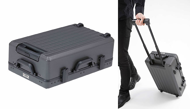 スーツケース・スタイルで運搬時の負担を大きく軽減するほか、飛行機への持ち込みサイズを実現しているのもポイント。大切なペダルを手荷物として持ち込むこともできる。