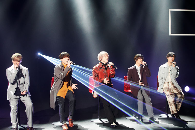 スタジオライブでは最新の6thアルバム『SiX』のボーナストラックに収められたR&Bバラード「Melody」を、待望の初出しパフォーマンス。幻想的なレーザーとスモークに浮かび上がるステージで、椅子に腰かけた5人が順番にマイクリレーしていく貴重な5人歌唱曲だ。